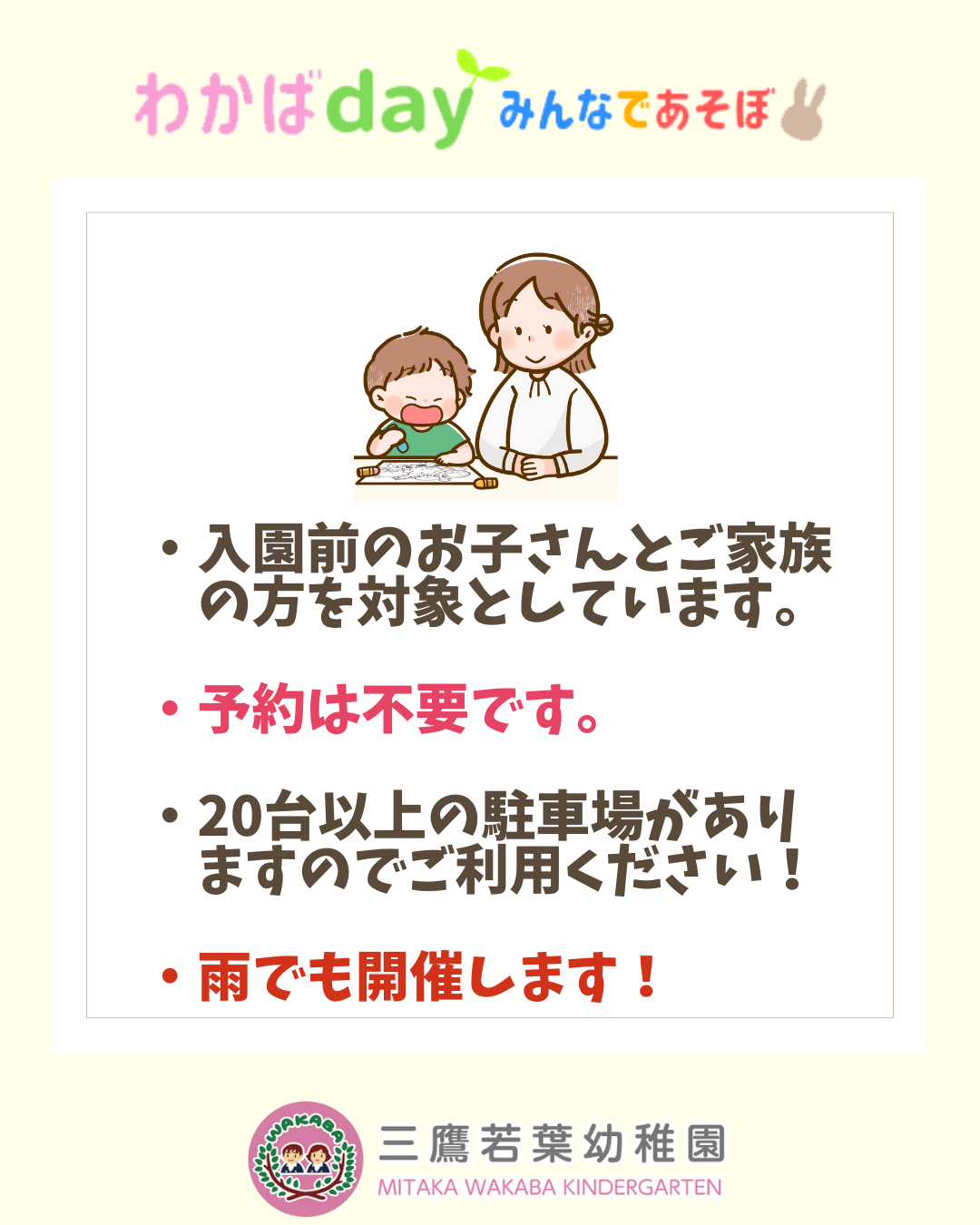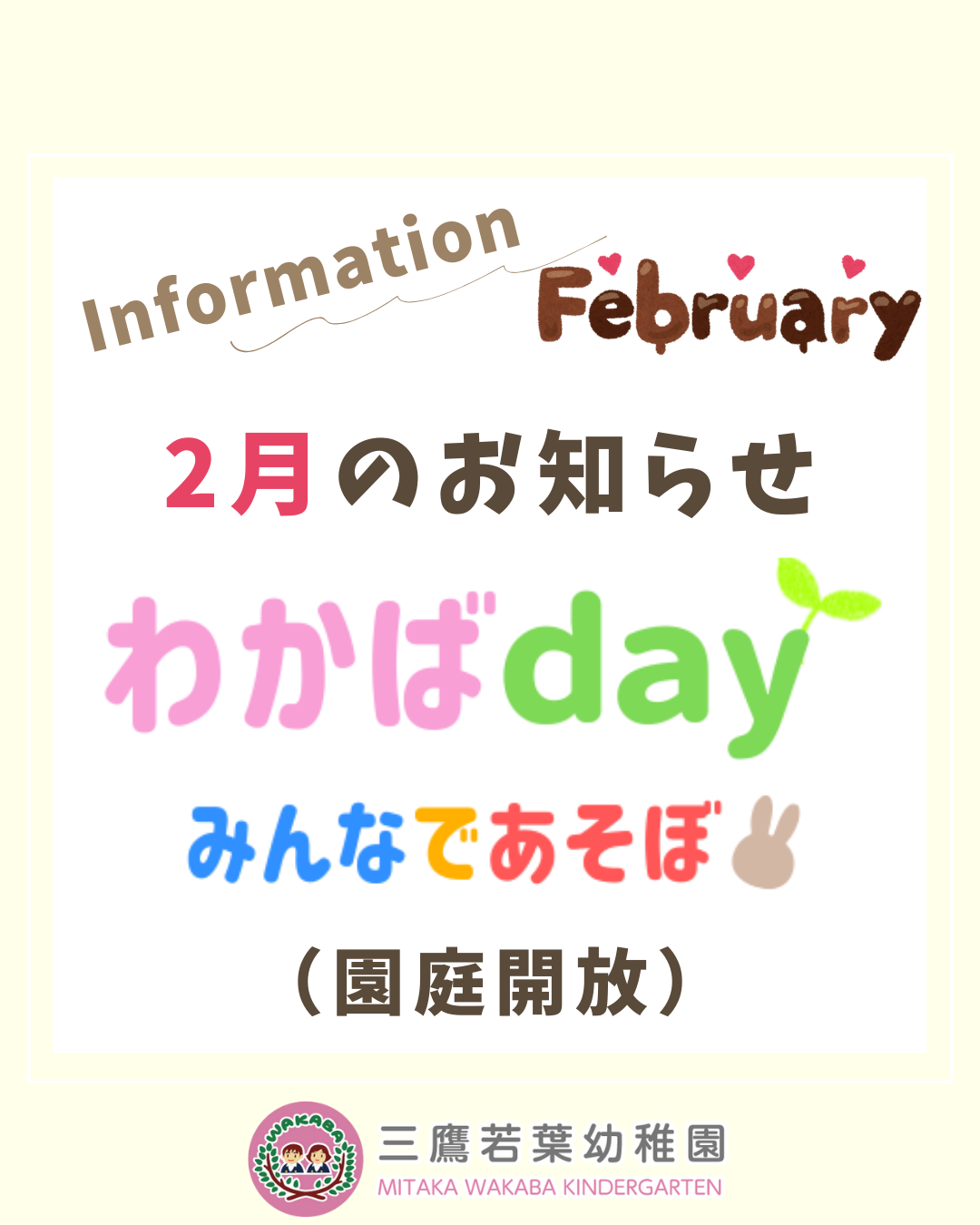 2月のわかばday(園庭開放)は2/7(土)です!