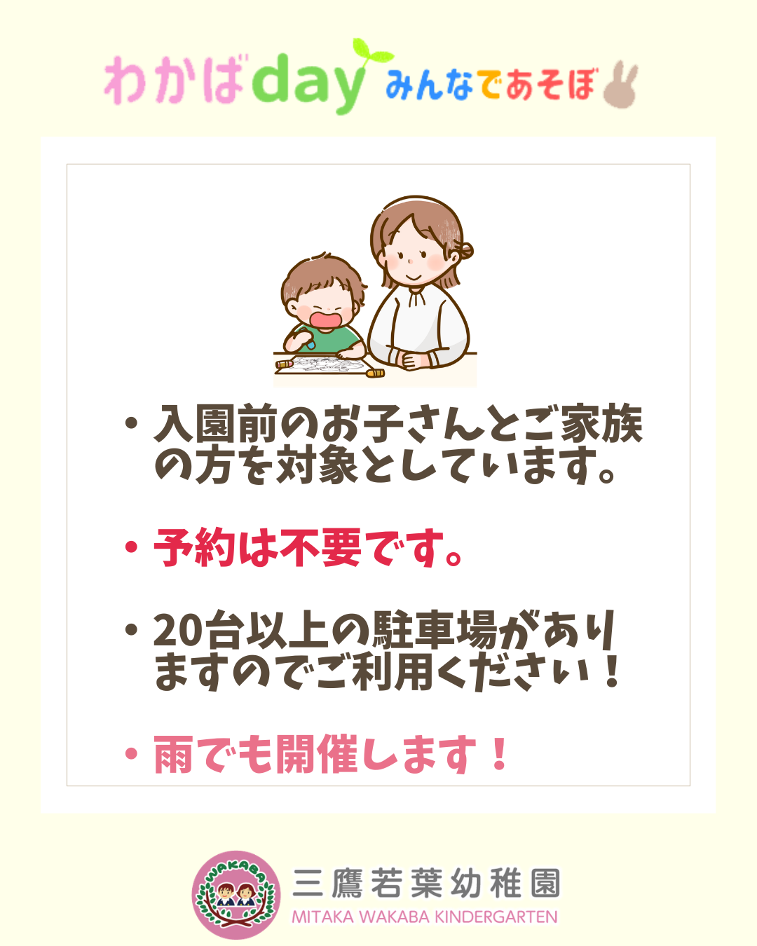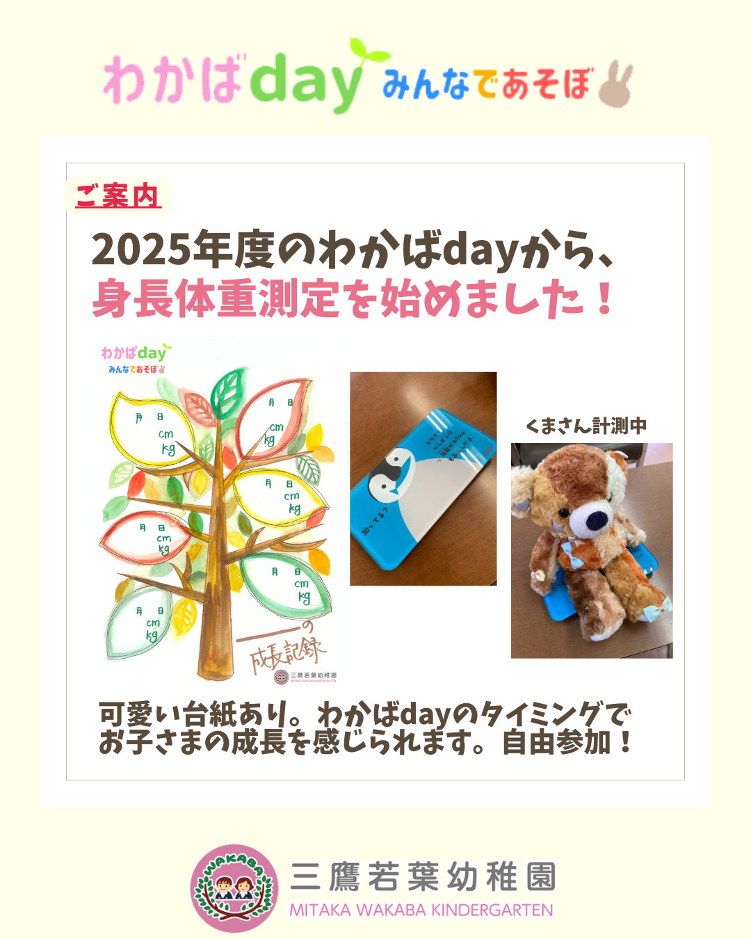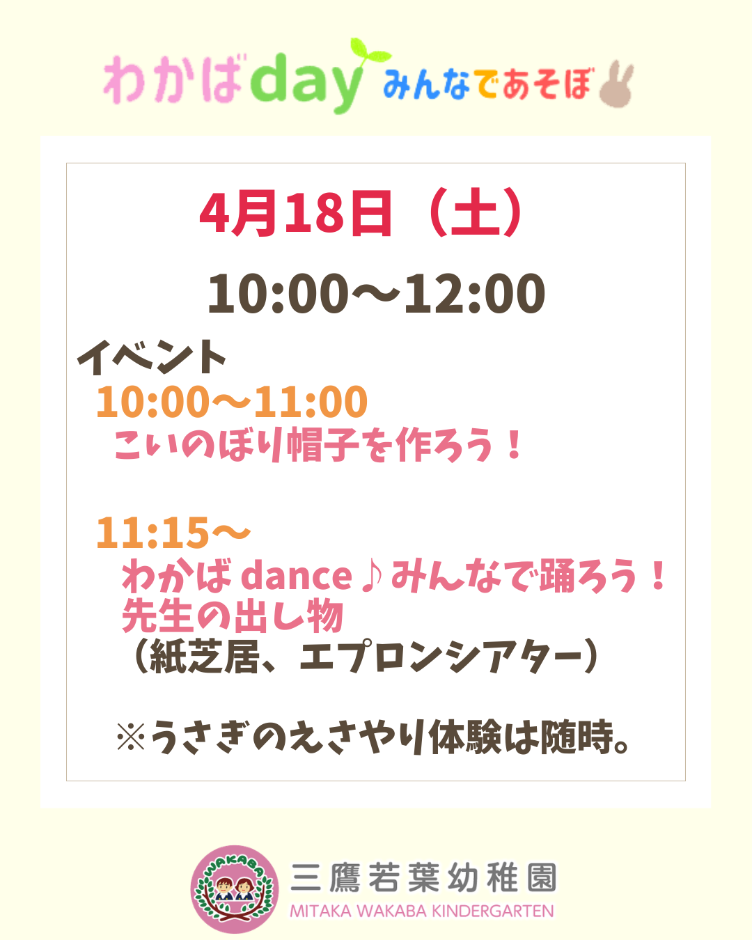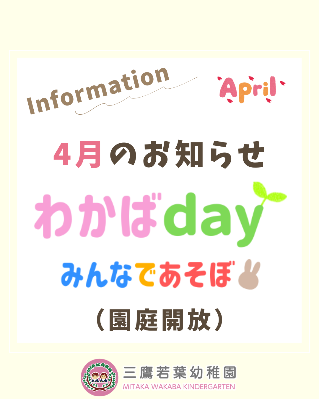 4月のわかばday(園庭開放)は4/18(土)です!